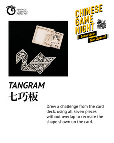 Celebrate the Year of the Horse with an evening of traditional Chinese games, fortune telling, festival food, and good company. Play classics like Mahjong, Go, Chinese Chess, Pai Gow and more, try your luck at puzzles and tangrams, and win HMAA gift shop vouchers up to $88!